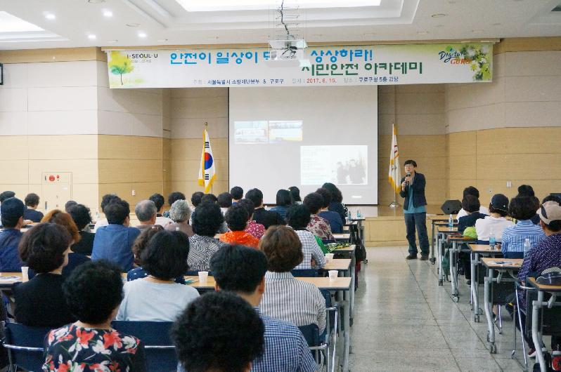 구로구는 민․관 협치사업의 일환으로 주민들의 자율방재에 대한 책임감과 안전의식 고취를 위해 서울시와 함께 구민안전아카데미를 마련했다.