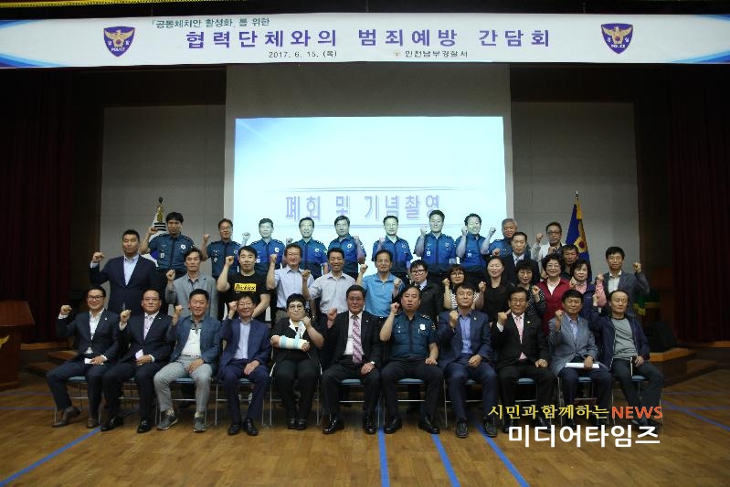 [미디어타임즈=문상수 기자] 인천남부경찰서(서장 조종림)는 지난 15일 오후 경찰서 4층 강당에서 생활안전연합회, 시민경찰, 남구청 관계자 등 50여명의 협력단체원들과 함께 ‘지역사회 범죄 예방 간담회’를 개최했다.이번 간담회에서 남부서는 참석자들과 남구의 치안 현황을 공유하고 범죄예방을 위해 공동체 치안이 나아갈 길에 대한 간담회 및 질의응답 시간을 가졌다. 또한, 경찰서에서 범죄예방을 위해 셉테드 사업의 일환으로 진행하고 있는 안심마을 만들기, 안심주차장 인증패 수여식, 제물포 담배골목 범죄환경개선 사업 등을 소개하며, 셉테드의 필요성과 유용성을 홍보하고 안전한 남구를 위한 지자체 및 협력단체들의 적극적인 협조를 당부했다.조종림 서장은 “공동체치안의 활성화를 위해 이번 간담회에서 도출된 다양한 건의사항을 치안정책에 적극 반영하고 협력단체 및 유관기관과의 교류 협력에 더욱 주력하여 주민들이 안심하고 행복한 삶을 영위할 수 있는 남구를 만들겠다.”고 밝혔다.