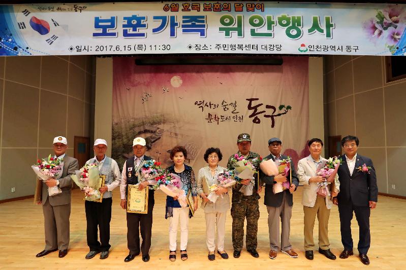 [미디어타임즈=문상수 기자] 인천 동구(구청장 이흥수)는 지난15일, 주민행복센터 3층 대강당에서 보훈가족 500여 명을 초청해 보훈가족 위안행사를 개최했다. 이번 행사는 6월 호국보훈의 달을 맞아 동구에 거주하는 국가유공자와 유족을 초청해 그분들의 명예를 기리고, 나아가 국민의 나라사랑 정신함양에 이바지 하고자 따뜻한 격려의 행사로 다채롭게 펼쳐졌다. 이날 행사는 식전공연으로 동구 구민노래자랑 출연자들의 재능기부로 흥겨운 노래로 행사의 분위기를 한껏 고조시켰다. 이후 모범 국가보훈대상자 표창(상이군경회 등 8단체)이 진행됐으며, 오찬행사와 함께 동구 국악인들의 축하공연이 이어져 참석자들의 눈길을 사로잡았다.이날 행사에 참석한 이흥수 동구청장은“오늘날 우리 후손들이 누리고 있는 자유와 평화는 국가유공자 여러분들의 희생과 그 유가족분들의 헌신의 대가임을 결코 잊어서는 안되며, 그 고귀한 희생에 감사해야 한다”고 말하고 행사에 참석한 보훈가족에게 목숨을 바쳐 나라를 지켜준 희생에 감사를 표했다.이날 행사를 진행한 구 관계자는 “호국 보훈의 달을 맞아 조촐하게나마 나라를 위해 희생한 보훈가족을 위해 감사한 마음을 전할 수 있었다”고 말하며“이번 행사를 통해 보훈가족을 존경하고 호국 정신을 함양하는 계기가 되기를 바란다”고 말했다.