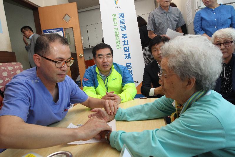 지난 9월 22일 대한노인회 광명시지회, 광명시의사회 · 한의사회 · 치과의사회가 함께 협약을 체결하여 상호협력을 약속한 ‘경로당 주치의제’는 전담 의료기관 주치의가 경로당을 방문하여 혈압·혈당 측정, 건강 상담 및 교육 등 의료서비스를 제공하는 것이다.