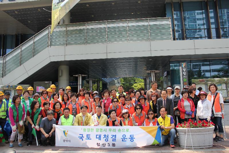[미디어타임즈= 이영희 기자] 광명시 철산3동은 16일 철산상업지구 일대에서 이춘표 광명시 부시장을 비롯한 관내 유관단체원과 주민 등 100여명이 참여한 가운데 국토 대청결 운동을 실시했다고 밝혔다.이날 국토 대청결운동을 통해 깨끗한 환경조성을 강조하며 상가 점포 및 공영주차장, 이면도로 등지에 방치되어 있는 생활쓰레기, 담배꽁초 등을 집중수거 하는 동시에 지역주민들의 적극적인 동참을 당부했다.