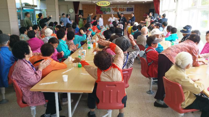 특히 명정동 공동체운동추진위원회(회장 김성곤, 부회장 김수진)에서 밑반찬과 다과를 정성으로 준비하며 어르신들을 위해 합심하여 봉사를 하였고, 식사 후에는 풍물패 공연과 색소폰 연주 등 재미있는 공연을 마련하여 즐거운 시간을 제공했다.