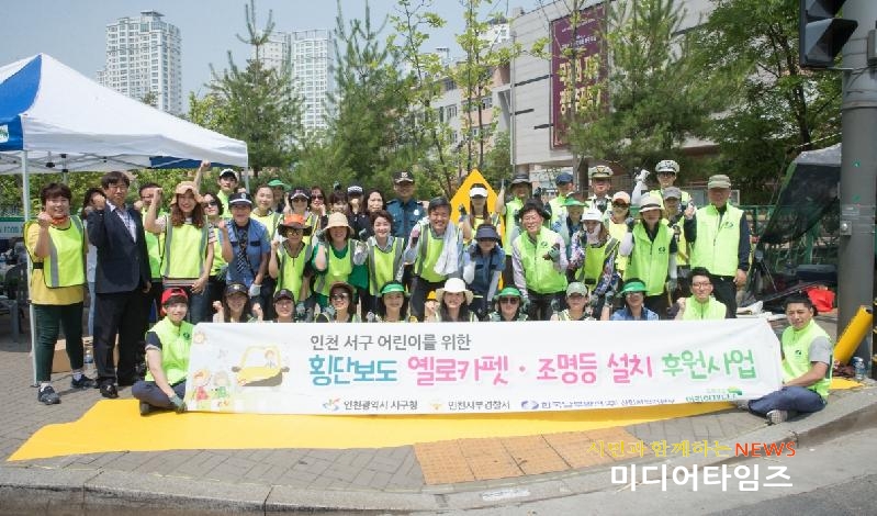 [미디어타임즈=홍기연 기자] 인천 서구(구청장 강범석)는 지난 16일 해원초·중·고등학교에 통학하는 아이들의 교통사고를 예방하고 아동이 안전한 마을 만들기 조성을 위해 학교 통학로 횡단보도 앞에 옐로카펫과 노란발자국을 설치했다.