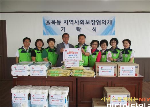 | 율목동 지역사회보장협의체 2분기『율목愛 꾸러미』기탁 사진.<ⓒ미디어타임즈> |