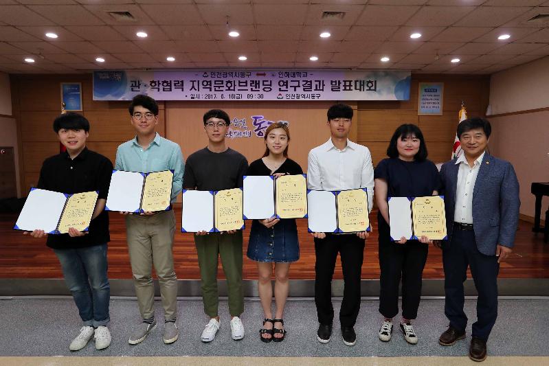 [미디어타임즈=문상수 기자] 인천 동구(구청장 이흥수)는 지난 16일 구청 대회의실에서 대학생과 직원 100여명이 참석한 가운데 2017 관․학협력 지역문화브랜딩 연구결과 발표대회를 개최했다.이번 발표대회는 관학협력으로 인하대학교 문화경영학과의 ‘지역문화브랜딩을 위한 관학 공동 세미나’와 연계해 동구지역 연구과제에 대한 합리적인 해결방안을 모색하고 그간의 연구결과를 보고하고자 마련됐다.구에 따르면 지난 3월부터 6월까지 6개팀 24명의 대학생이 ‘우각로 역사문화마을 조성’을 주제로 연구에 참여했으며, 해당부서의 멘토 지원을 받아 지역현안 사업에 대해 학생들 스스로 직접 현장을 실습하고 참신한 아이디어를 제안했다.이날 발표대회 결과 ▲최우수상은 1조의 ‘동구 금창동 배다리 거리’ ▲우수상은 4조의 ‘동구 우각로 역사마을’ 과 5조의 ‘추억을 여는 책장’ ▲장려상은 2조의 ‘한권의 책, 당신의 이야기’, 3조의 ‘추억이 있는 금창동 도시재생’, 6조의 ‘지붕없는 도서관 배다리 책길’이 선정됐다구는 앞으로 우각로 역사문화마을 조성 사업을 추진함에 있어 이번 관학협력 연구결과 성과물을 적극적으로 반영할 방침이다.이흥수 동구청장은 “관․학이 공동으로 지역현안에 대해서 고민하며 해결방안을 모색하는 의미있는 자리였다”며“앞으로도 젊고 열정이 넘치는 대학생들이 동구 구정에 많은 관심을 가져 주길 바란다”고 말했다.