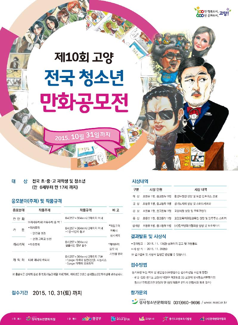 고양시(시장 최성) 성사청소년문화의집에서는 창의인재 육성 및 만화 창작기반 확충을 위해 ‘제10회 고양 전국 청소년 만화공모전’을 개최한다고 12일 밝혔다.