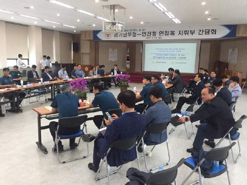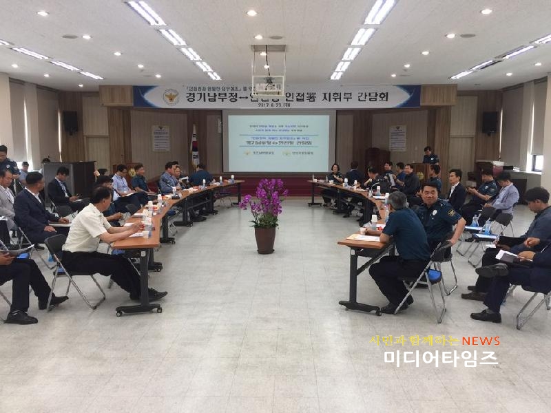[미디어타임즈=문상수 기자] 인천지방경찰청(청장 박경민)은'17. 6. 20(화) 11:00경 광역화 흉폭화 되는 이동성 범죄에 신속히 대응하고자 인천청과 경계에 있는 경기남부청과 간담회를 개최하였다이날 간담회에는 인천청과 경기남부청 2부장, 각 지방청 생안⋅112⋅여청⋅형사기능 계장, 인천청 인접서(삼산․계양․남동․서부서)와 경기남부청 인접서(부천원미‧오정‧시흥‧김포서)의 생안⋅112⋅여청⋅형사과장이 함께하여 유기적 공조를 통한 현장 대응력 강화 방안에 대하여 논의하였다.이번 간담회에서는 효율적 공조출동을 위해 경계지역에 대한 112요원 합동 길학습과 FTX(모의훈련)를 실시하여 현장대응력을 강화하고 평시 인접 지역관서간 월선․교차순찰로 치안공백 최소화 하며 인접서간 측방통신망과 비상연락체계를 주기적으로 점검하여 공조를 강화해 나가는 방안 등에 대하여 논의되었다.인천청과 경기남부청 관계자는 최근 SNS 대화중 시비로 발생한 시흥-인천 고교생 집단 폭력 사건을 신속한 공조수사 및 첩보 공유로 집단 폭력사태 확산을 방지한 사례처럼 상호 관할을 불문한 사건처리와 긴밀한 공조로 국민에게 신뢰받는 경찰활동을 추진하겠다고 밝혔다