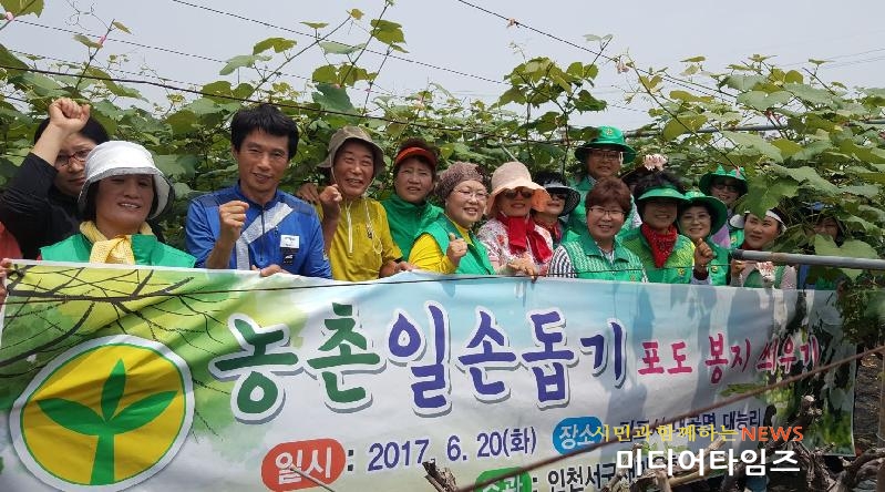 [미디어타임즈=홍기연 기자] 인천 서구새마을회는 지난 20일 새마을지도자 35명이 참여한 가운데 김포시 대곶면 대능리 한 농가를 찾아 ‘포도봉지 씌우기’ 봉사활동을 전개했다.