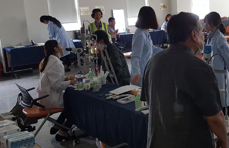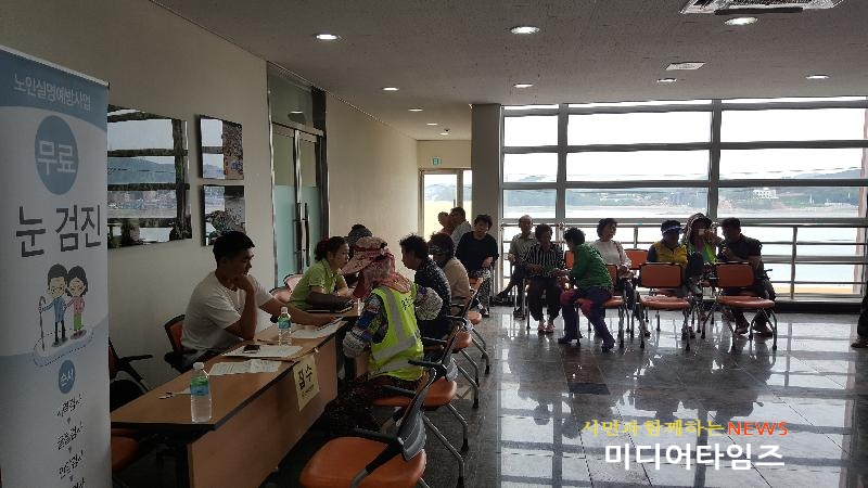 [미디어타임즈=문상수 기자] 한국실명예방재단에서 실시하는 무료 안 검진사업(보건복지부 공모사업)이 노인인구가 많고 의료취약지역인 옹진군이 선정되어 지난20일 안과전문의 2명, 검사원 등 총 8명의 의료진과 최첨단의료장비를 가지고 영흥면을 방문해 안과 무료검진을 실시했다. 안과 병원이 없는 도서지역, 교통불편으로 내원이 어려운 주민 183명에게 수준 높은 안과 진료를 실시하였으며 돋보기와 약품 등을 지원했다.이날 검진 후 이상소견자 7명에 대해선 차후 정밀검사를 실시할 예정이며 특히, 저소득층 3명에게는 안과수술을 무료로 시행할 예정이다. 조윤길 옹진군수는 진료를 받은 주민들을 대신하여 안 검사 및 진료를 해주신 한국실명예방재단 관계자에게 감사함을 전했으며, “앞으로도 국가에서 실시하는 모든 공모사업에 적극 참여하여 주민의 삶의 질 향상에 더욱 노력하겠다”고 밝혔다.