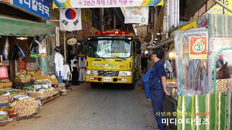 | 인천서부소방서, 전통시장 소방차 길터주기 훈련 및 캠페인.<ⓒ미디어타임즈> |