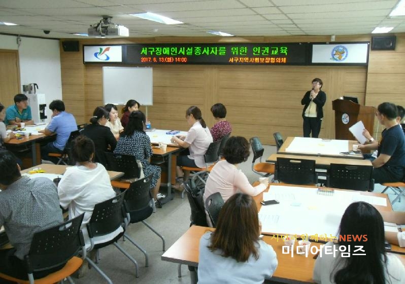 | 서구 장애인복지시설종사자를 위한 장애인 인권교육 모습.<ⓒ미디어타임즈> |
