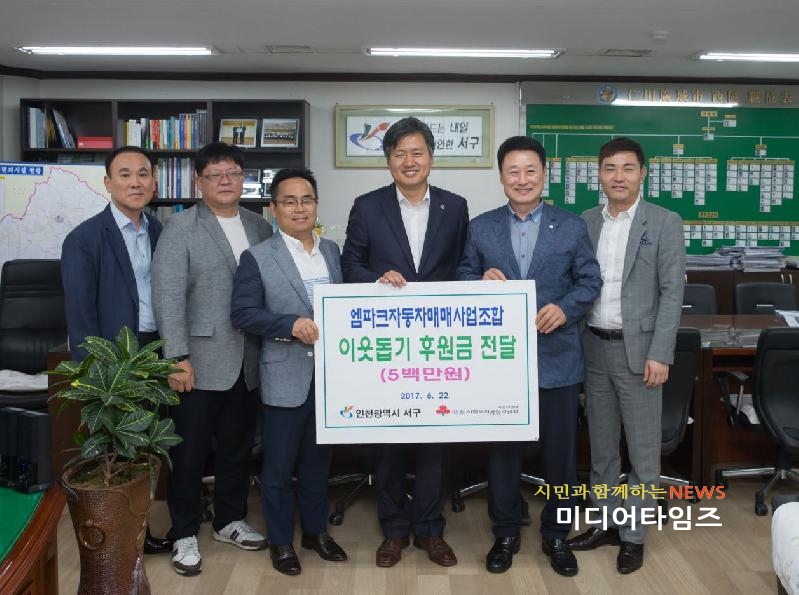 [미디어타임즈=홍기연 기자] 인천엠파크자동차매매사업조합(조합장 김창국)은 지난 22일 서구지역의 어려운 가정을 위한 이웃사랑 후원금 5백만원을 서구청에 전달했다.