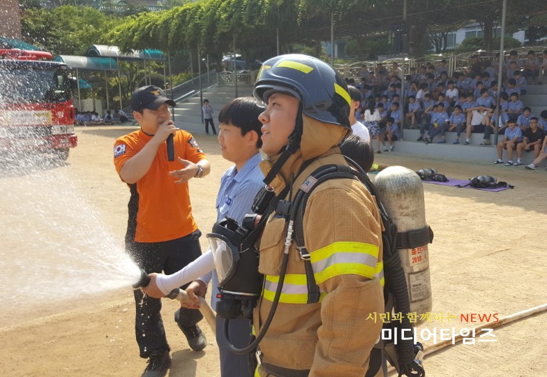 | 관교중학교 소방안전교육 모습. <ⓒ미디어타임즈> |