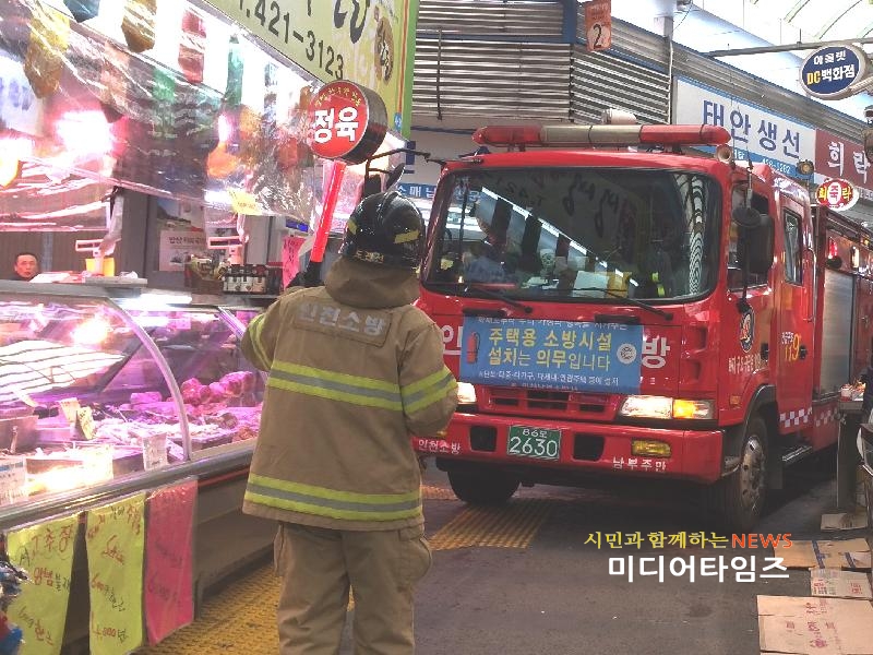 [미디어타임즈=문상수 기자] 인천남부소방서(서장 김성기)는 23일 석바위시장을 대상으로 출동시간 단축 및 화재진압 등 체계적이고 효율적인 현장대응 능력을 향상시키기 위해 ‘소방출동로 확보’ 훈련을 실시했다.이번 훈련은 소방차량 5대, 소방공무원 및 의용소방대원 30여명이 동원된 가운데 통로가 협소한 전통시장에 대하여 소방차가 출동할 수 있는 최소한의 통로를 확보하고 상인들과 시민들의 협조체계를 구축하기 위한 것으로, 상인들의 상품 진열 등으로 인한 통로장애 발생을 원천적으로 예방하고 화재에 대한 경각심을 고취시키는 것에 초점을 맞췄다. 소방서 관계자는 "안전 사각지대가 될 수 있는 전통시장에 대한 지속적인 소방통로 확보 훈련으로 신속하고 효율적인 화재진압과 상인들의 화재예방의식 제고에 만전을 기할 방침이며, 상인들도 화재 등 각종 사고 상황에 신속한 현장대응이 이뤄 질 수 있도록 소방통로 확보에 적극 협조해 줄 것”을 당부했다.