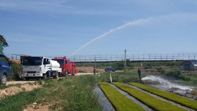[미디어타임즈=문상수 기자] 극심한 가뭄이 지속되어 소하천이 마르고 지하수가 고갈되는 등 가뭄으로 전국이 몸살을 앓고 있다. 옹진군 연평면 지역도 강수량이 전년 5월 대비 25%에 그쳐, 가뜩이나 물이 부족한 지역 실정에 어려움을 더하고 있다. 물부족 현상은 농번기로 접어들면서 가뭄피해로 이어지고 있으며 특히 모내기 실적이 예년에 비해 턱없이 떨어지는 등 논농업 피해로 번지고 있는 실정이다.이런 가운데 연평면사무소에서는 가뭄대책 가운데 하나로, 이달 5일부터 연평부대 그리고 인천중부소방서 119연평지역대와 협력하여 모내기에 어려움을 겪고 있는 농민들에게 농업용수를 긴급지원하고 있다. 지원은 물차를 동원하여 마른 논에 물을 대어주는 방식으로 이뤄지며 현재까지 대략 농업용수 450여톤을 지원하였다. 이런 노력이 한 차례 비와 맞물리자 6월초 46%정도에 머물던 이앙률이 현재 100%(9.5ha)에 다다르게 됐으며 이는 갈라진 논바닥을 망연하게 바라보며 한숨만 내쉬던 농민들에게 적잖은 위로가 되었다.