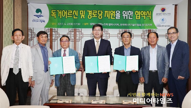 [미디어타임즈= 이영희 기자] 평택시(시장 공재광)는 6월 22일 사단법인 한국에너지 기술인협회 경기지부, 대한노인회 평택시지부와 협약을 맺고 소외된 독거어르신 가구에 화재감지기 설치, 노후주택 집수리 및 경로당의 에어컨, 보일러 등 각종 설비 수리 봉사를 통해 어르신들을 위한 섬김 행정을 추진코자 협약식을 가졌다.