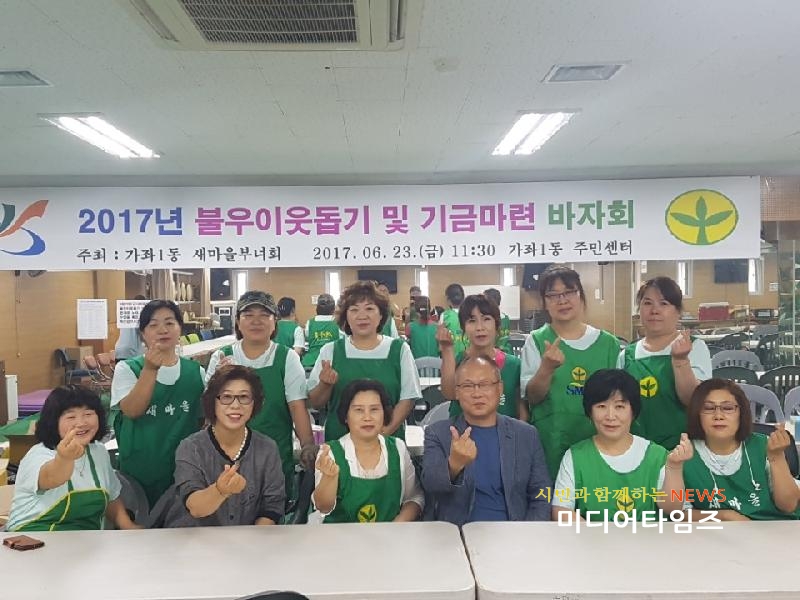 [미디어타임즈=홍기연 기자] 인천 서구 가좌1동 새마을부녀회(회장 이문자)는 지난 23일 관내 유관기관장 및 자생단체원들과 지역주민이 참석한 가운데 불우이웃돕기 바자회를 성황리에 개최했다.