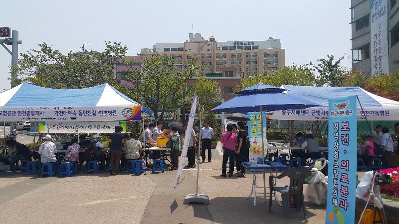 [미디어타임즈=문상수 기자] 인천 중구지역사회보장협의체(공동위원장 김홍섭 중구청장, 김구 민간공동위원장)은 지난 23일 인천역에서 ‘중구 지역주민과 함께 하는 건강박람회’를 개최했다. 중구지역사회보장협의체 보건ㆍ의료분과가 주관한 이날 행사에는 중구보건소, 동인천길한방병원, 건강보험공단 인천중부지사, 인천기독병원, 중구정신건강증진센터, 중구치매센터금빛사랑채가 참여하여 지역주민 및 어르신을 대상으로 기본적인 건강 체크(체성분 검사, 체지방 및 골밀도 측정, 손혈관나이, 스트레스 검사, 치매검진 및 우울증 검진, 인바디, 구강 예방) 등 중구지역주민들에게 양질의 건강 복지서비스를 제공하였다. 협의체 관계자는 “이번 행사를 통해 중구지역의 다양한 계층과 많은 지역주민들에게 올바른 건강정보를 전하고 건강관리 방법을 직접 체험해 보는 장이 되어 주민들의 많은 호응을 받았다”고 전했다.