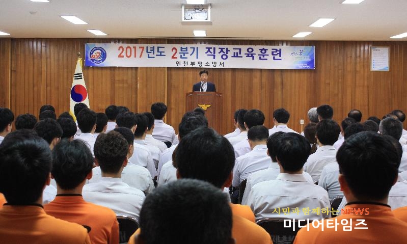 [미디어타임즈=문상수 기자] 인천 부평소방서(서장 노경환)는 26일 소방서 3층 강당에서 청렴한 직장분위기 조성과 올바른 공직윤리관 확립을 위한 직장교육훈련을 가졌다. 이 날 직장교육은 2017년 2분기 소방행정 유공자 3명에 대한 표창을 시작으로 ▲직원대상 소방서장 격려사 ▲청탁금지법 관련 교육 ▲ 안전사고 대응 직무교육 ▲ 스마트 의료지도 소개 ▲ 통신관련 보안교육 등을 진행했다.특히 폭력통합 예방교육과 안전사고 방지를 위한 외래 강사 초빙한 교육을 통해 직원들로부터 큰 호응을 얻었다.노경환 부평소방서장은 “직원간 상호 존중하고 배려하는 직장 분위기 조성에 힘쓰기 바라며 건강관리에 힘 쓰기 바란다”며“국민에게 신뢰받는 소방공무원이 될 수 있도록 안전한 현장활동과 올바른 공직 확립에 적극 동참해 달라” 고 전했다.