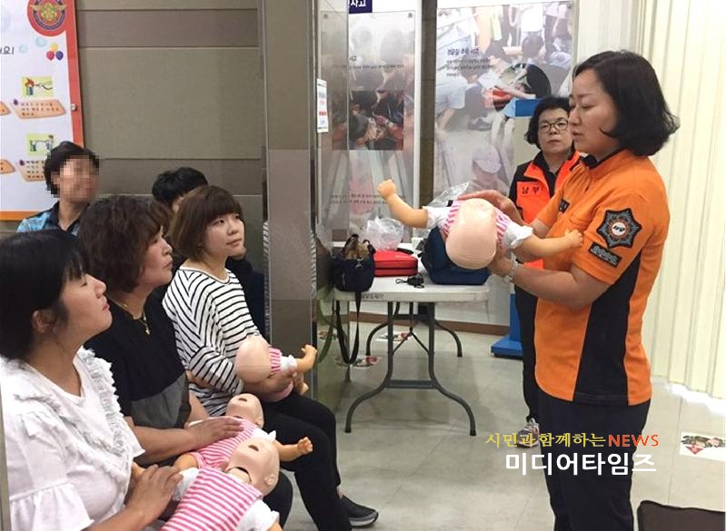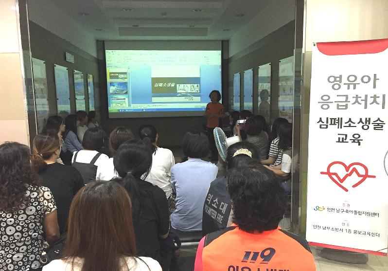 [미디어타임즈=문상수 기자] 인천남부소방서(서장 김성기)는 27일 관내 어린이집 보육교사 30여명을 대상으로 본서 1층 소방홍보전시관에서 심폐소생술 교육을 실시했다.이번 교육은 많은 아이들을 보육하고 있는 교사에 대하여 응급상황 발생 시 대응능력 배양에 중점을 두고 실시하였으며, 최근 사고사례를 통하여 보육시설에서 흔히 일어날 수 있는 안전사고를 사전에 예방할 수 있도록 하였다. 또한, 아이들에게 응급상황 발생 시 대처요령으로 아동 및 성인심폐소생술 하임리히법(기도폐쇄 응급처치법)과 자동제세동기(AED) 등 교육 장비를 활용한 실제 체험 위주로 진행되었다. 소방서 관계자는 “이번 교육을 통해 생명의 소중함과 안전의식을 심어주는 계기가 되길 바라며, 심폐소생술은 국민 모두가 반드시 배워야 할 중요한 응급처치 방법이므로 앞으로 더 알찬 구성으로 교육을 진행해 나갈 것”이라고 말했다.