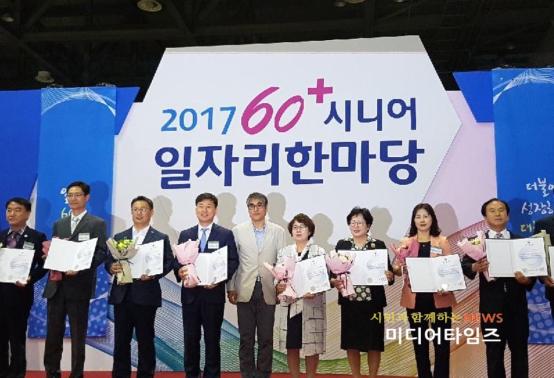 | 보건복지부 주최 2016년 노인일자리 및 사회활동 지원사업평가 공익활동부분 최우수 기관 선정 사진.<ⓒ미디어타임즈> |