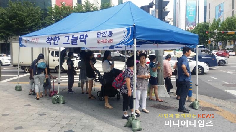 [미디어타임즈= 이영희 기자] 때 이른 더위로 인해 힘겨워하고 있는 시민들을 위해 안양시에 ‘착한 그늘막’이 등장했다.