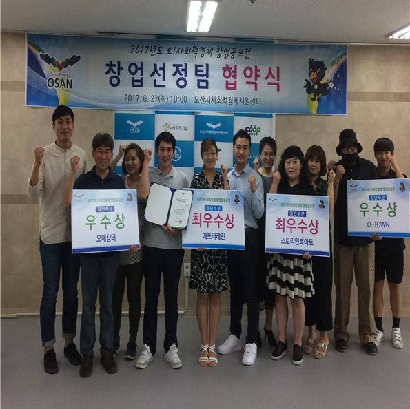 『2017 오! 사회적경제 창업공모전』은 오산시의 지역문제에 기반한 지역문제해결형 사회적경제 조직을 발굴 육성하고 오산시의 예비 사회적경제 창업기업에 대한 차별화된 지원사업을 추진하기 위한 목적으로 시행되었다. 지난 4월 13일부터 5월 16일까지 공모를 통해 진행되었으며 총 9팀이 공모에 응해 서면심사와 전문가 집단 대면심사를 통해 일반부문 2팀, 청년부문 2팀이 최종 선정되었다.