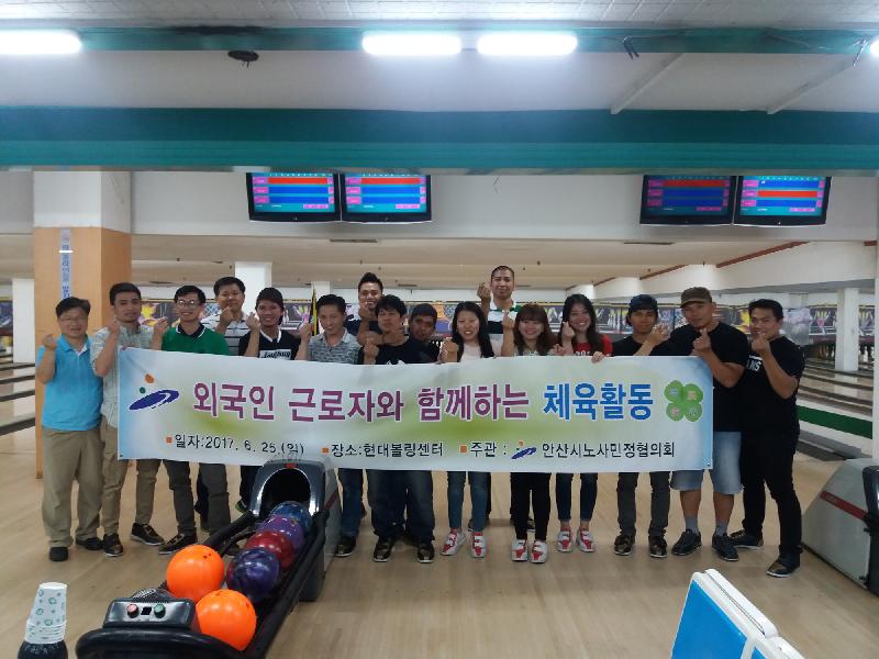필리핀, 인도, 중국 등 30여 명의 외국인 근로자들이 참가한 이번 행사는 한국사회 와 직장 내에서의 안정적인 정착과 근로의욕을 고취하기 위해 마련됐으며, 관내 볼링장에서 볼링경기를 하며 화합의 시간을 가졌다.