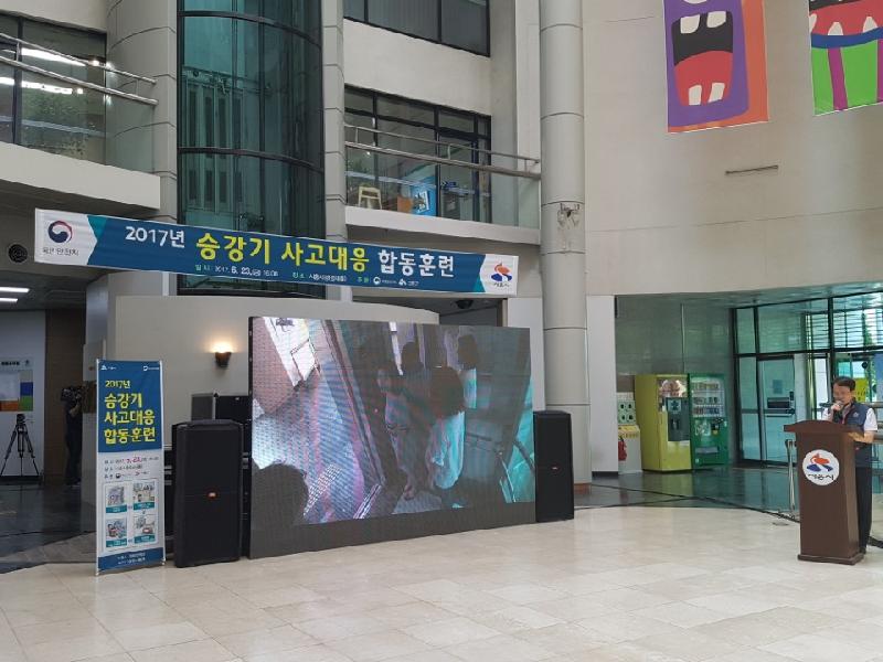 훈련은 승강기에 탑승한 승객이 정전으로 인해 갇히는 사고를 연출하고 비상버튼을 이용한 구조요령과 관리주체의 대응 및 구조신고, 그리고 시흥소방서와 유지관리업체의 현장출동과 구조과정을 그대로 진행하여 승강기 갇힘사고 발생 시 초기대응 및 구조기관의 협조체계를 중점으로 점검했으며, 훈련시작 전에는 한국 승강기안전공단 주관으로 승강기 안전의 중요성에 대한 사례중심의 교육도 실시했다.