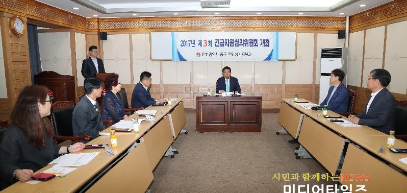 [미디어타임즈=문상수 기자] 인천 중구(청장 김홍섭)는 지난 6월 30일 중구청 상황실에서‘2017년 제3회 긴급지원심의위원회 회의’를 개최했다.이번 긴급지원심의위원회에는 위원장인 김홍섭 구청장 외 위원 7명이 참석한 가운데 ‘관내 저소득층이 위기사유로 어려움에 처한 세대 지원에 대한 적정성 심의 19건, 적정성 및 연장 심의 3건, SOS 복지안전벨트 적정성 심의 4건’에 대해 심의해 모두 원안 가결 되었다. 긴급복지지원 및 SOS 복지안전벨트사업의 대상자는 갑작스러운 위기사유로 생계유지가 곤란한 가구이며, 위기사유로는 주 소득자의 사망, 가출, 행방불명, 구금시설 수용 등으로 소득을 상실한 경우, 중한 질병 또는 부상을 당한 경우, 가정폭력 또는 가구원으로부터 성폭력을 당한 경우, 화재 등으로 거주하는 주택․건물에서 생활하기 곤란하게 된 경우 등이다.긴급지원심의 위원장인 김홍섭 구청장은 인사말을 통해 “우리 중구의 고통 받는 소외계층 및 저소득층에게 각종 서비스 지원을 위해 최선을 다하겠다”며, “앞으로 긴급지원심의위원들의 지속적인 성원과 관심으로 행복한 복지 중구를 만들어가자”고 전했다.