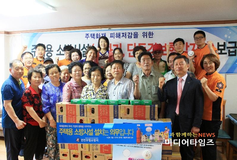 [미디어타임즈=문상수 기자] 인천부평소방서(서장 노경환)는 지난달 30일 부평구 일신동 분회경로당에서 ‘말하는 소화기와 단독경보형감지기’ 나눔 행사를 가졌다.화재 등 재난으로부터 안전한 지역을 만들고자 일신동 일대 주택에 거주하는 독거노인 및 장애우 등을 대상으로 통장, 경로당 대표, 지역 주민들이 모인 자리에서 주택용 소방시설 나눔 행사를 가졌다. 이 날 나눔 행사는 렛츠런 인천부평문화공감센터(센터장 박우일)의 사회공헌 일환으로 마련한 ‘말하는 소화기’는 녹음된 음성을 통해 소화기 사용법 순서를 알려주는 소화기로 고령자들이 화재 시 당황하지 않고 적극 활용할 수 있을 것으로 기대된다. 또 화재 시 발생하는 연기를 감지하는 단독경보형감지기 설치를 통해 화재 사실을 인지하고 대피를 도와 인명과 재산피해 예방에 크게 기여할 것으로 예상된다. 이 일대 50여 가구에 주택용 소방시설 보급을 시작으로 주택용 소방시설 사용법 및 화재예방 안전교육, 주택용 소방시설 설치 촉진 캠페인을 실시하였으며 지역 주민과 함께 안전 공감을 이끌어내는 다양한 활동을 펼쳤다. 소방서 관계자는 “시민 대다수 소화기 사용법은 알고 있으나 화재 발생 시 사용자가 당황하여 올바로 사용하지 못하는 경우 음성 안내를 통한 ‘말하는 소화기’가 큰 도움이 될 것”이라며“앞으로도 주택용 소방시설 보급을 통해 취약지역 없이 모두가 안전한 사회로 거듭날 수 있도록 노력하겠다”고 전했다.