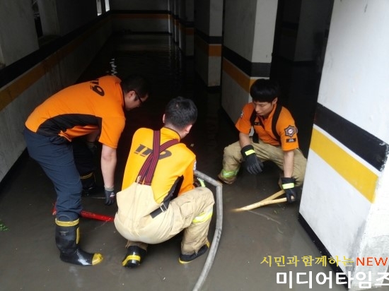 | 인천서부소방서, 풍수해피해에 따른 복구지원 활동 사진.<ⓒ미디어타임즈> |