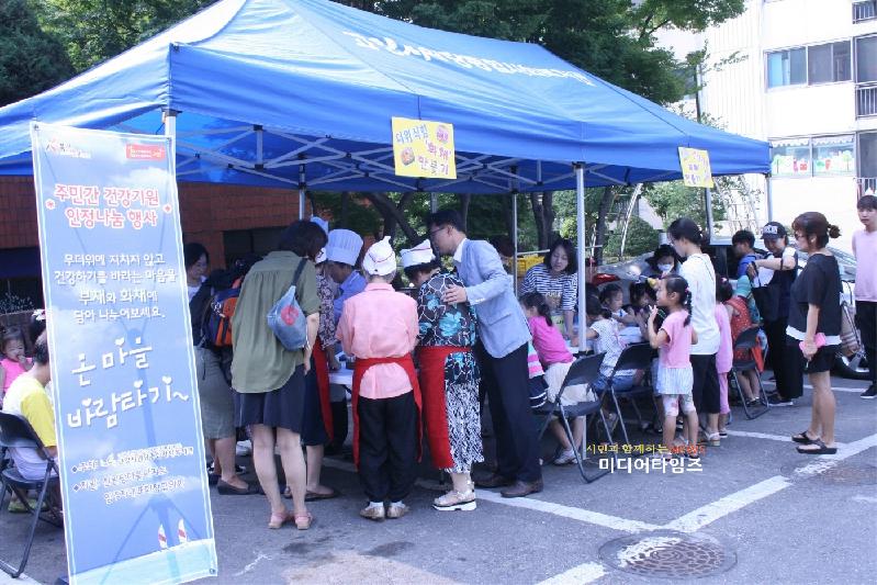 이는 지역주민 스스로 인정이 많은 아파트를 만들고자 하는 취지에서 마련된 행사로 지역주민들이 정성을 담아 만든 부채와 복지관 프로그램에서 배운 솜씨로 만든 쿠키, 남성 어르신들이 만든 시원한 수박화채를 함께 나누는 시간을 가졌다.