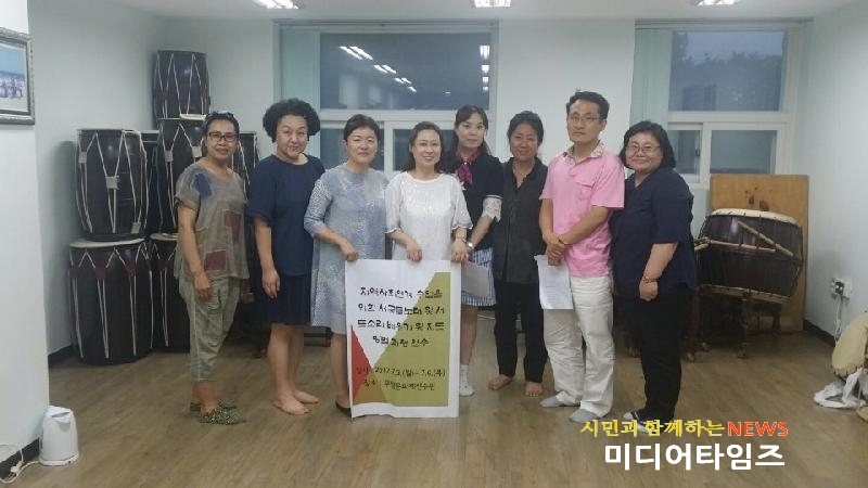 [미디어타임즈=문상수 기자] 인천서구 신현고등학교 음악실에서 울려퍼지는 ‘하나 하나 하나가 둘이로구나’를 하며 모를 심는 아이들, 옆에서 북을 치며 흥을 돋구는 인천시무형문화재 제18호서곶들노래보존회장(양선우) 이수자 최미희 선생, 아이들과 함께 노래하는 전수장학생 손영숙, 신영애 선생까지 서곶들노래로 하나 되는 모습이다. 고교 학점제의 롤모델인 신현고 음악교과에서는 지역사회 인프라 연계 수업으로 서곶들노래를 구성하여 교육과정 안에서 학교가 문화 경쟁력을 키울 수 있는 역할을 수행함으로서 문화예술교육환경을 구축하며 행복한 학교환경을 조성하는데 기여하였다.학생들에게 무형문화재 제18호 서곶들노래 전수를 통해서 민속예술의 뿌리찾기와 함께 전통 민속예술 정체성 확립 및 이해를 높이며 또한 학생들 개개인의 재능계발의 일환이 되고 있다. 흔히 무형문화재는 어려운 것이라고 여기기 쉬운 아이들에게 어려운 것이 아님을 경험하게 하며 우리말과 소리의 자연스러움과 맛을 느끼고 나아가 우리의 음악문화를 바르게 이해하고 자긍심을 지니도록 하며 청소년들의 건전한 문화생활을 영위할 수 있도록 기틀을 마련한다.
