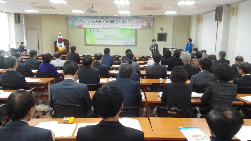 특히 학교에서 관리자와 교사의 행동이 학생이 보고, 듣고, 배우는 교과서가 되기 때문에 장애학생에 대한 인권을 존중하는 바른 태도를 알고 실천하는 것이 매우 중요하다며 거듭 강조하였다.