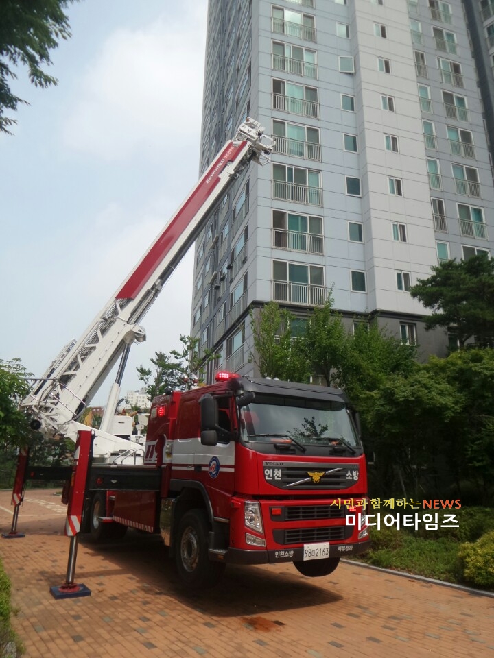 | 인천서부소방서, 준초고층건축물 합동소방훈련 사진.<ⓒ미디어타임즈> |