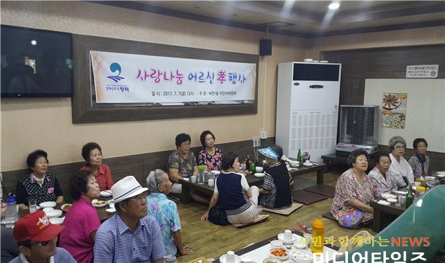 이날 행사에는 자녀 없이 홀로 거주하시는 어르신 30여분을 관내 음식점에 모시고 주민자치위원회 위원들이 직접 음식을 나르면서 어르신들의 말동무가 되어드렸으며 정성스럽게 마련한 선물을 드리는 등 모처럼 어르신들이 웃는 하루가 됐다.