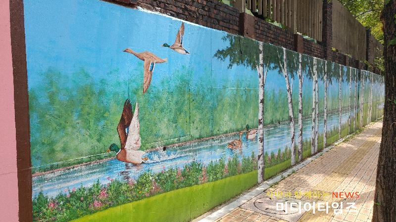 [미디어타임즈= 이영희 기자]평택시 비전2동 행정복지센터(동장 최중범)는 지난 3월부터 6월까지 4개월 간 지역공동체 일자리사업과 연계해 낡고 퇴색된 한광고등학교 담장 200m에 대한 벽화거리조성 사업을 완료했다.