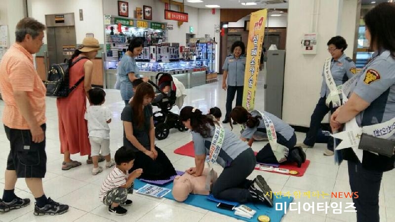 [미디어타임즈=문상수 기자] 인천부평소방서(서장 노경환)는 이마트 부평점에서 갈산여성의용소방대로 구성된 ‘119수호천사’가 시민들을 대상으로 심폐소생술 보급에 나섰다고 전했다.이번 ‘119수호천사’는 심폐소생술 강사과정 등 전문자격을 취득한 의용소방대원으로 구성되어 마트를 방문한 시민들에게 심폐소생술과 자동제세동기(AED) 사용법 교육하며 큰 관심을 불러 일으켰다.의용소방대는 지역주민 중에서 희망하는 자들로 구성돼 평소에는 생업에 종사하면서 특별한 화재나 소방업무를 보조하고 안전교육, 소방시설 점검 등 다양한 봉사활동을 수행하고 있다.강태임 갈산여성의용소방대장은 “이번 ‘119수호천사’ 활동을 통해 평소 심폐소생술의 중요성은 알았으나 배울 수 있는 기회가 마땅치 않았던 시민들에게 심폐소생률을 보급 확산해 심정지 환자에 대한 초기 대응이 높아질 수 있도록 지속적으로 활동에 나서겠다”고 전했다.