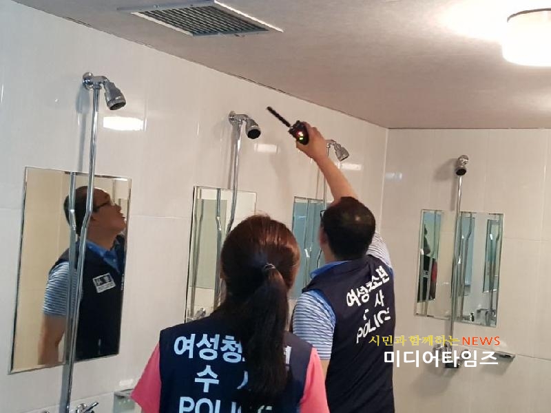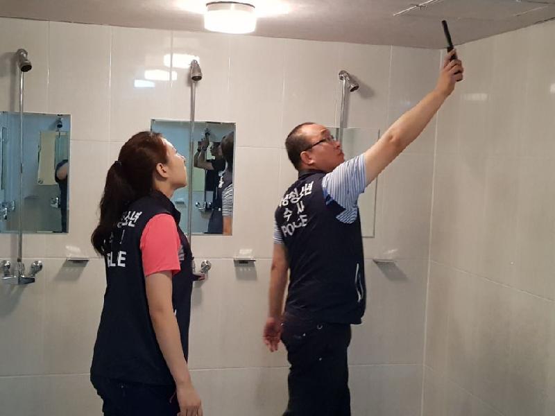 | 문학워터파크, 스파시스 등 다중이용시설 내 몰카 설치 여부 집중 점검 모습. <미디어 타임즈> |