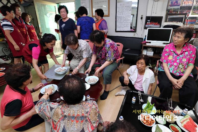 [미디어타임즈=문상수 기자] 인천 동구 송현1‧2동 바르게살기 운동위원회(위원장 전정애)는 지난11일, 송현1․2동 제2노인정에서 어르신 60여명을 모시고 경로잔치를 개최했다. 이날 행사는 무더운 여름철을 맞아 지역 어르신들의 건강과 장수를 기원하고 경로효친사상 함양을 위해 마련됐으며, 어르신들에게 정성껏 마련한 삼계탕을 대접하며 안부를 묻고 애로사항을 귀담아 듣는 등 주민 간 친목과 화합을 다지는 좋은 기회가 됐다.김진기 송현1‧2동 동장은 “앞으로도 이런 봉사의 자리들이 많이 마련되어 어르신들이 웃고 사는 따뜻한 동네가 되었으면 좋겠다”고 말했다.