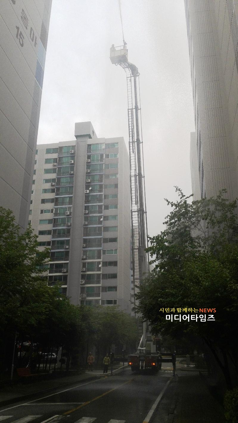 | 고층건물 화재발생에 대비하기 위한 현장대응 소방훈련 모습. <미디어 타임즈> |