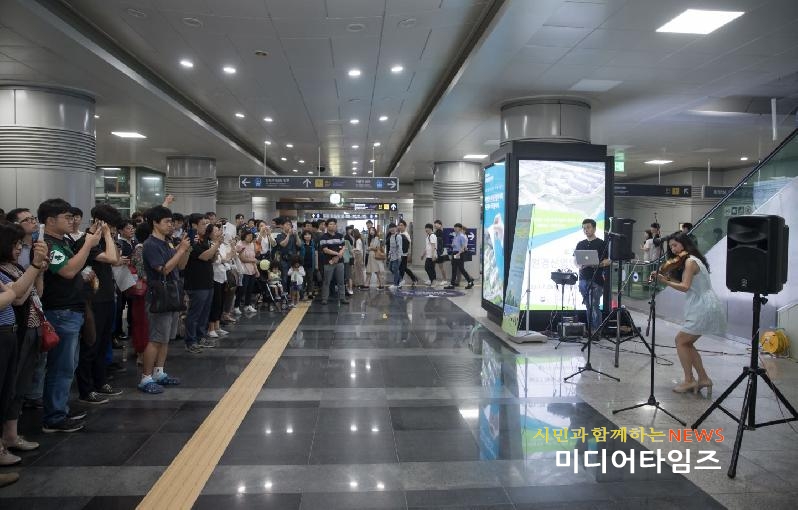 [미디어타임즈=홍기연 기자] 인천 서구(구청장 강범석)는 지난 14일 검암역 환승통로에서 ‘2017 노을마당 문화행사 제3회차 버스킹 공연’을 총 관객 200여명이 참여한 가운데 성황리에 마무리했다.