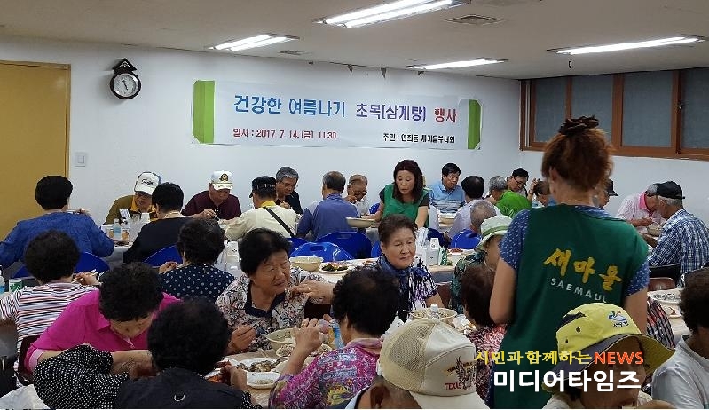 | 연희동 새마을부녀회 어르신 삼계탕 대접 행사.<ⓒ미디어타임즈> |