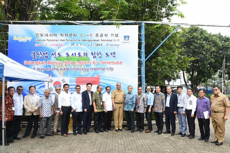 경주시가 자체 개발한 급속수처리기술이 인도네시아 해외시장 사업화에 성공하면서 국내외 물산업시장에서 활발한 사업수주가 기대되고 있다. 경주시는 17일 인도네시아 자카르타 상수도사업본부(PDAM)에서 이동식 음용수 공급장치 시범시설 설치사업의 성공적 시운전을 마치고 준공식을 가졌다고 밝혔다. 이날 준공식에는 최양식 경주시장과 바수키 하디물조노 인도네시아 공공주택부 장관, 자롯 샤이풀 히다얏 자카르타 주지사, 알리 대통령 수석보좌관을 비롯한 다수의 정부관계자와 현지 기업인 ㈜테크니콘의 일루완 대표, 국내 협력기업체로 김성종 ㈜MBT 대표, 박현근 ㈜비엘텍 대표, 송하정 ㈜한창기전 대표, 조도현 ㈜네가트론 대표 등 사업 관계자 60여명이 참석했다. 이번 사업은 지난해 11월 한국환경산업기술원에서 주관하는 ‘환경기술 국제공동 현지 사업화 지원사업에 경주시의 급속수처리기술인 ’GJ-R‘이 최종 선정되어 정부 및 기업 지원금으로 인도네시아 자카르타 지역에 일일 150톤의 음용수 공급용 급속수처리장치를 제작 설치하게 되었다. 경주시급속수처리기술 ’GJ-R‘은 시가 5년에 걸쳐 자체 연구 개발한 수처리 시스템으로, 수중오염물질을 고속응집장치와 마이크로버블을 이용한 버블 코팅기술로 급속 분리한 후 오존처리를 통해 깨끗한 처리수를 최종 생산한다. 특히 타 시설에 비하여 저렴한 설치 비용과 운영관리가 간단한 것이 최대 장점이다. 자카르타 상수도사업본부에 우선 설치된 이동식 음용수 공급장치는 상수처리 분야로 제작되어 음용수 공급이 가능하며, 도서지역과 밀림지역이 많은 인도네시아 지역 특성에 적합한 이동식 컨테이너와 차량으로도 제작이 가능해 인도네시아 현지에서 높은 관심과 기대를 받고 있다. 준공식 후에는 바수키 하디물조노 공공주택부 장관의 요청으로 최양식 경주시장과의 면담이 이뤄졌다. 이 자리에서 최 시장은 상수공급이 원활하지 못한 인도네시아 지역을 대상으로 환경인력 양성 프로그램을 접목한 ‘GJ-R’ 운영을 제안했으며, 이에 바수키 장관은 정부차원의 지원을 약속했다. 이러한 경주시의 인도네시아 물 산업시장 진출의 성공사례는 오는 9월 경주 하이코에서 열리는 ‘2017 대한민국 국제 물주간 및 제1회 아시아 국제물주간’ 행사에서 해외사업의 성공사례로 발표될 예정이다. 최양식 경주시장은 “경주시가 자체 개발한 급속수처리기술이 물 산업시장에 뛰어들어 국내 사업화뿐 아니라 해외시장에 진출하면서 그 동안의 노력이 가시적 성과를 보이고 있다”며, “이번 인도네시아 진출은 물문제로 고통받는 동남아를 비롯한 해외시장에서 좋은 사례가 될 것으로 적극적인 사업화 추진으로 국내외 물산업 시장에서 물산업 선도도시의 위상을 높혀나가겠다“고 전했다.