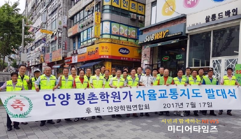 평촌학원가연합회 차량팀장 모임회는 지난 17일 자율 교통지도 발대식을 개최하고, 학원차량팀장 27명으로 구성된 자율교통지도 봉사단을 운영한다고 밝혔다.