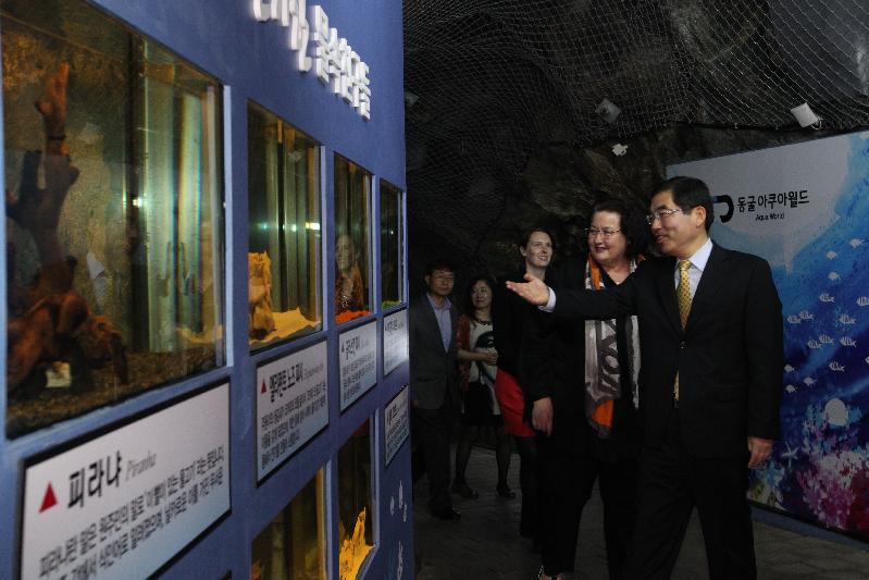 | 지난 30일 양기대시장과 함께 클레어 펀리 주한 뉴질랜드 대사가 광명동굴을 관람하고 있다. |