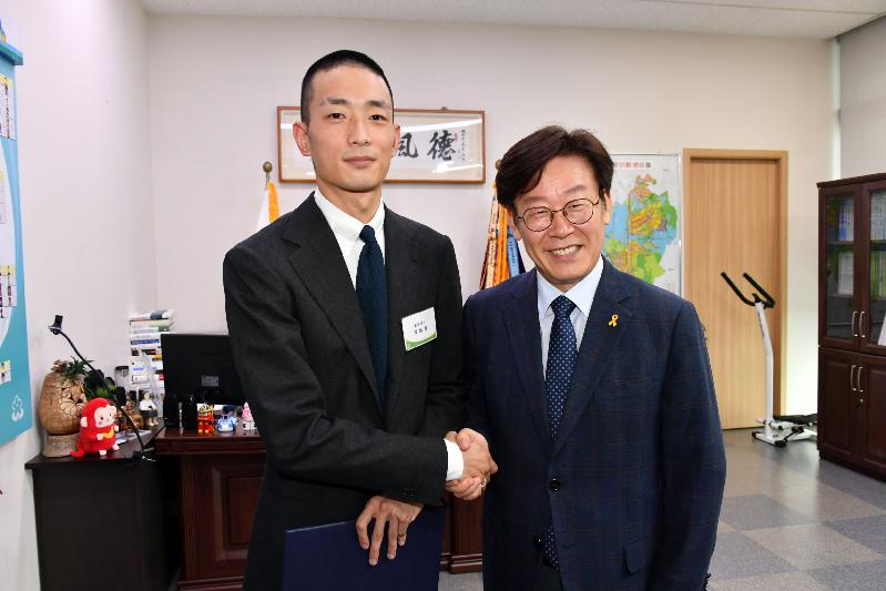 이재명 성남시장은 20일 오후 2시 30분 시장 집무실에서 탑 패션모델 박성진 씨와 이명관 씨에게 ‘성남시 의료관광 홍보대사 위촉장’을 줬다. 위촉기간은 1년이다.