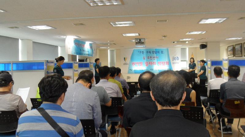 동 주민센터 소규모 일자리박람회는 최일선인 동 주민센터에서 구인·구직자 간의 만남의 장을 마련해 구직정보를 제공하고, 현장면접을 통해 실업률을 해소하기 위한 것으로, 올해 세 번째로 열렸다.