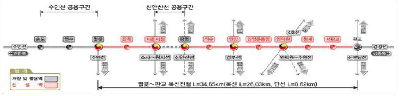 | 월곶 판교선 노선도. |